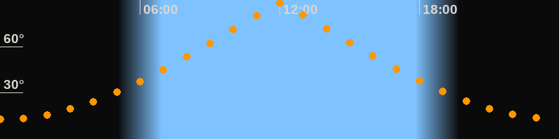 | Höchster Stand (Kulmination) | 12:01 Uhr (h = 88,4°) |