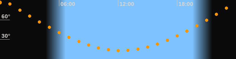 | Höchster Stand (Kulmination) | 00:18 Uhr (h = 88,4°) |