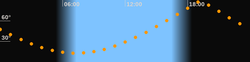 | Höchster Stand (Kulmination) | 19:14 Uhr (h = 88,4°) |