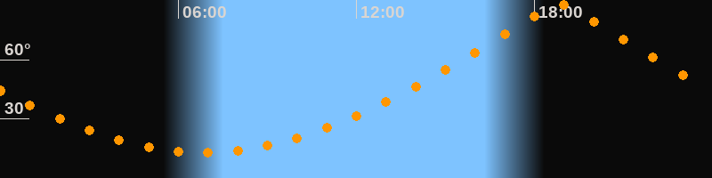 | Höchster Stand (Kulmination) | 18:51 Uhr (h = 88,4°) |