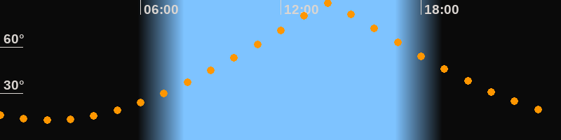 | Höchster Stand (Kulmination) | 14:04 Uhr (h = 88,4°) |