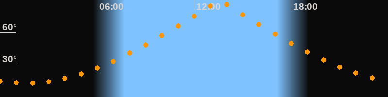 | Höchster Stand (Kulmination) | 13:34 Uhr (h = 88,4°) |