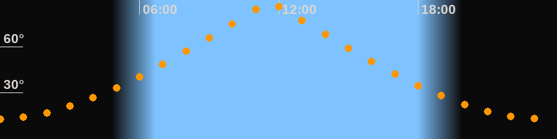 | Höchster Stand (Kulmination) | 11:36 Uhr (h = 88,4°) |