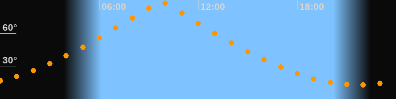 | Höchster Stand (Kulmination) | 09:44 Uhr (h = 88,4°) |