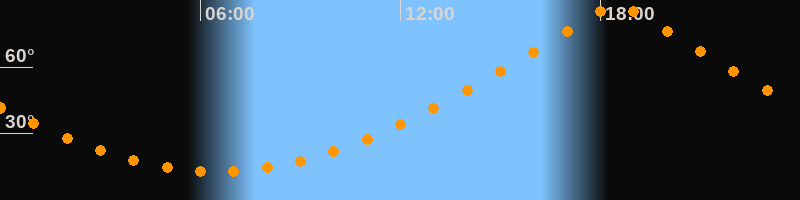 | Höchster Stand (Kulmination) | 18:30 Uhr (h = 88,4°) |