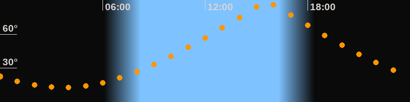 Höchster Stand (Kulmination)15:37 Uhr (h = 88,4°)