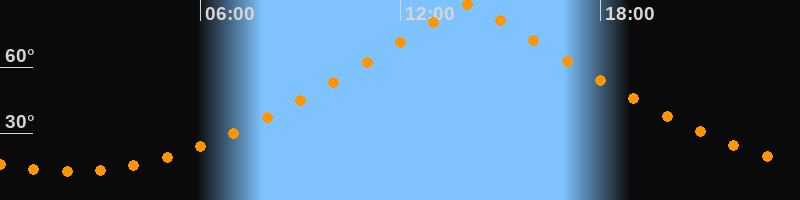 | Höchster Stand (Kulmination) | 14:02 Uhr (h = 88,4°) |