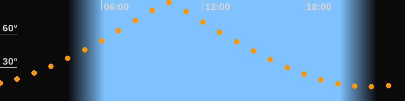 | Höchster Stand (Kulmination) | 09:56 Uhr (h = 88,4°) |