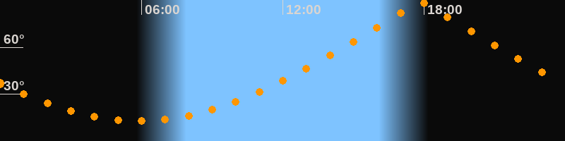 | Höchster Stand (Kulmination) | 17:51 Uhr (h = 88,4°) |