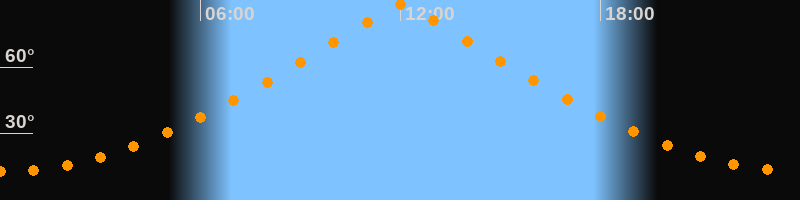 | Höchster Stand (Kulmination) | 12:02 Uhr (h = 88,4°) |