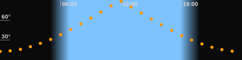 | Höchster Stand (Kulmination) | 11:55 Uhr (h = 88,4°) |