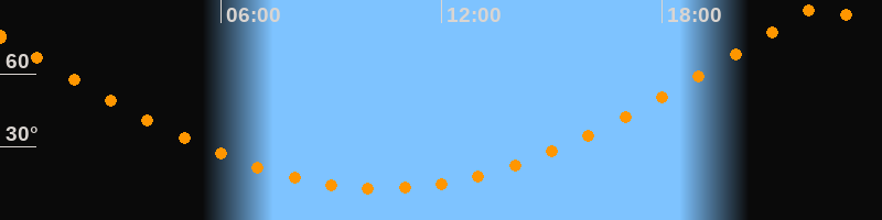 | Höchster Stand (Kulmination) | 22:23 Uhr (h = 88,4°) |