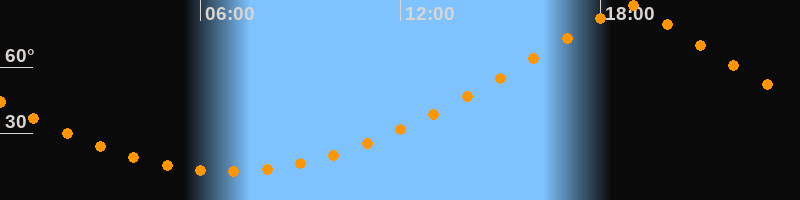 | Höchster Stand (Kulmination) | 18:49 Uhr (h = 88,4°) |