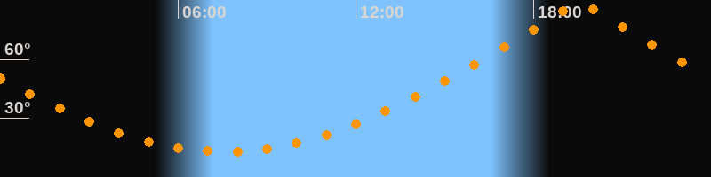 Höchster Stand (Kulmination)19:34 Uhr (h = 88,4°)