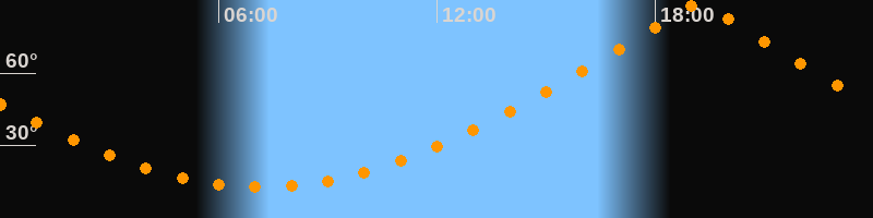 | Höchster Stand (Kulmination) | 19:10 Uhr (h = 88,4°) |