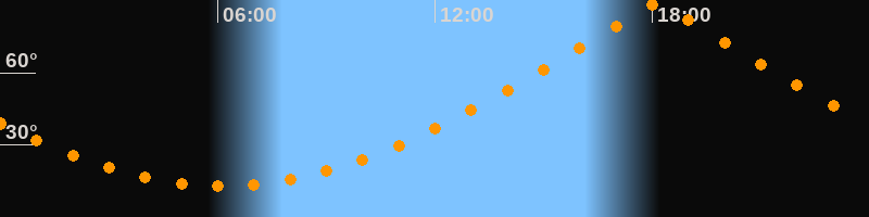 Höchster Stand (Kulmination)18:07 Uhr (h = 88,4°)