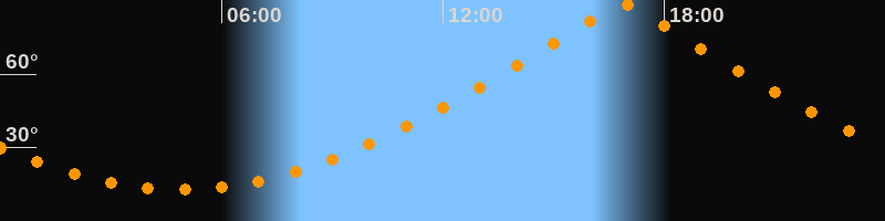 | Höchster Stand (Kulmination) | 16:52 Uhr (h = 88,4°) |