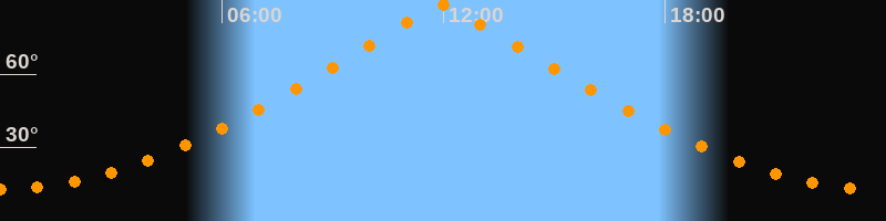 | Höchster Stand (Kulmination) | 11:58 Uhr (h = 88,4°) |