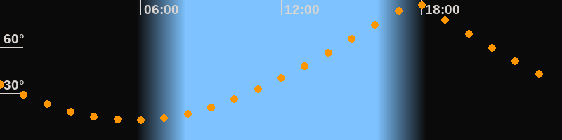 Höchster Stand (Kulmination)17:41 Uhr (h = 88,4°)