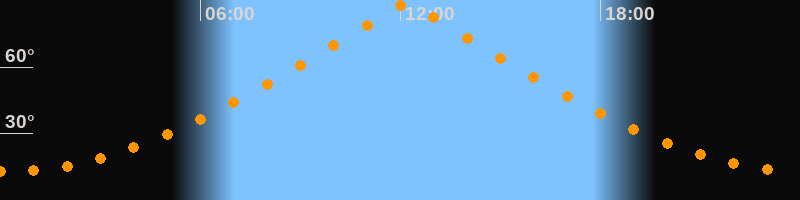 | Höchster Stand (Kulmination) | 12:10 Uhr (h = 88,4°) |