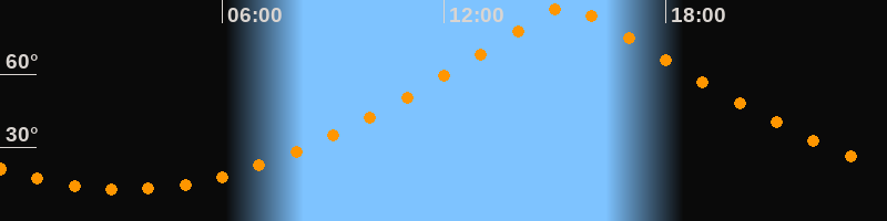 | Höchster Stand (Kulmination) | 15:21 Uhr (h = 88,4°) |