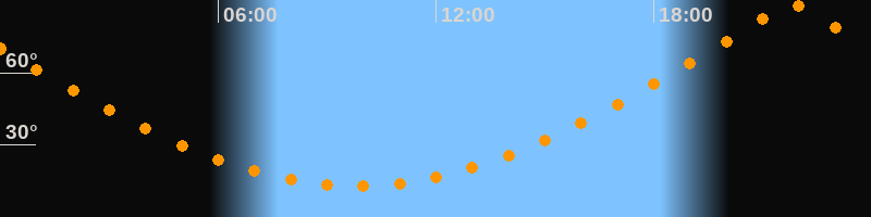 | Höchster Stand (Kulmination) | 21:48 Uhr (h = 88,4°) |