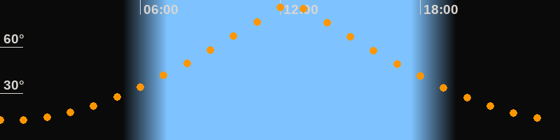 | Höchster Stand (Kulmination) | 12:28 Uhr (h = 88,4°) |