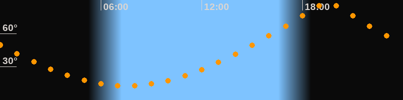 | Höchster Stand (Kulmination) | 19:29 Uhr (h = 88,4°) |