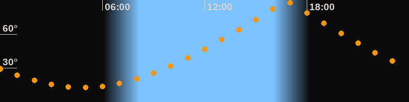 | Höchster Stand (Kulmination) | 16:48 Uhr (h = 88,4°) |