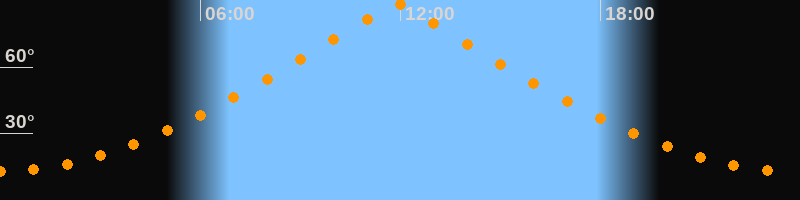 | Höchster Stand (Kulmination) | 11:53 Uhr (h = 88,4°) |