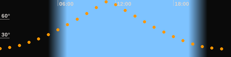 | Höchster Stand (Kulmination) | 11:15 Uhr (h = 88,4°) |