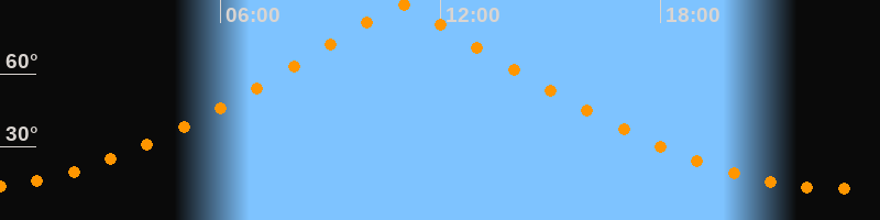 | Höchster Stand (Kulmination) | 10:55 Uhr (h = 88,4°) |