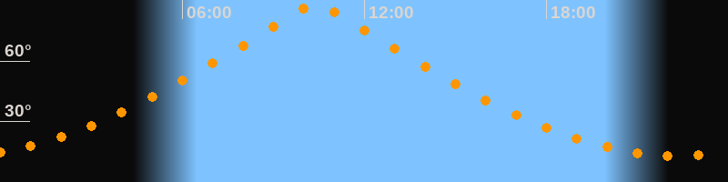 | Höchster Stand (Kulmination) | 10:24 Uhr (h = 88,4°) |