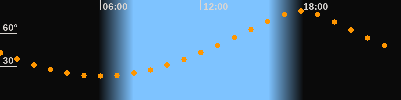 | Höchster Stand (Kulmination) | 17:58 Uhr (h = 79,9°) |