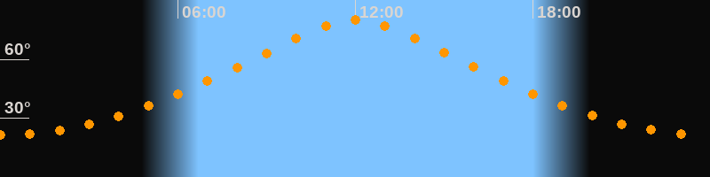 | Höchster Stand (Kulmination) | 12:01 Uhr (h = 79,9°) |