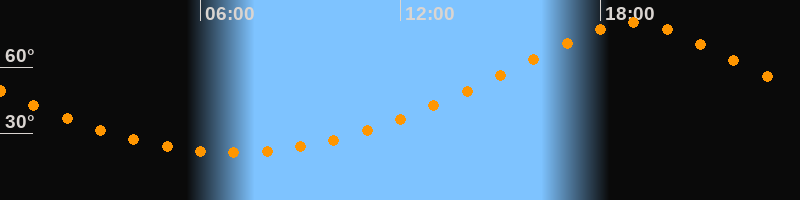 | Höchster Stand (Kulmination) | 18:58 Uhr (h = 79,9°) |