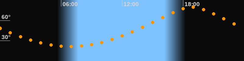 | Höchster Stand (Kulmination) | 18:51 Uhr (h = 79,9°) |