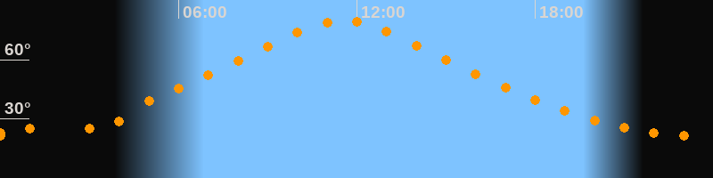 | Höchster Stand (Kulmination) | 11:32 Uhr (h = 79,9°) |