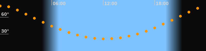 | Höchster Stand (Kulmination) | 00:12 Uhr (h = 79,9°) |