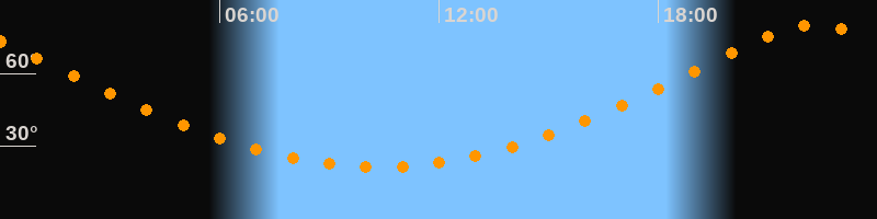 | Höchster Stand (Kulmination) | 22:19 Uhr (h = 79,9°) |