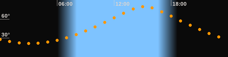 | Höchster Stand (Kulmination) | 15:10 Uhr (h = 79,9°) |