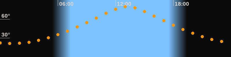 | Höchster Stand (Kulmination) | 13:12 Uhr (h = 79,9°) |