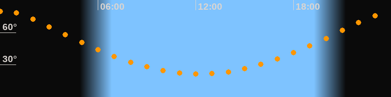 | Höchster Stand (Kulmination) | 00:11 Uhr (h = 79,9°) |