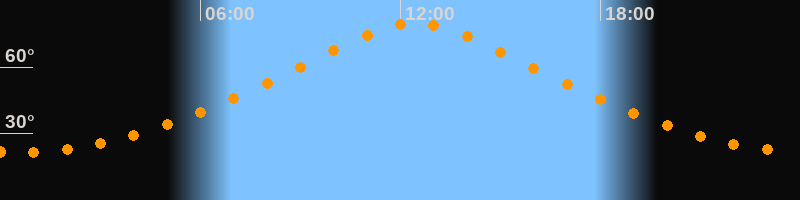 | Höchster Stand (Kulmination) | 12:27 Uhr (h = 79,9°) |
