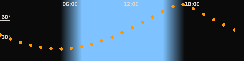 | Höchster Stand (Kulmination) | 17:45 Uhr (h = 83,6°) |
