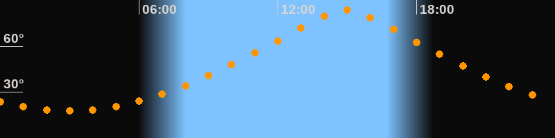 | Höchster Stand (Kulmination) | 14:56 Uhr (h = 83,6°) |