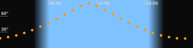 | Höchster Stand (Kulmination) | 11:00 Uhr (h = 83,6°) |