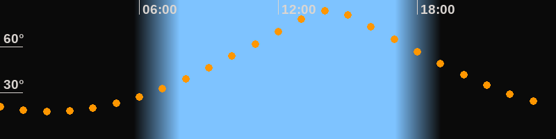 | Höchster Stand (Kulmination) | 14:10 Uhr (h = 83,6°) |
