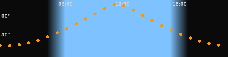 | Höchster Stand (Kulmination) | 12:20 Uhr (h = 83,6°) |