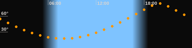 | Höchster Stand (Kulmination) | 19:53 Uhr (h = 83,6°) |